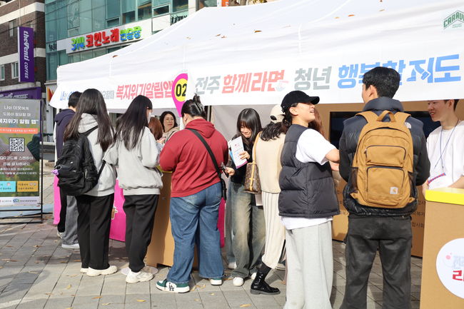 구체적으로 이날 오전 11시부터 오후 4시까지 행사장에는 △전주시 6개 사회복지관의 청년의 고립 예방을 위한 ‘복지위기알림앱’ 설치 참여 △전주시 청년복지정책 홍보존 △전주함께라면 사업 홍보 및 청년 고립예방 미션 참여 챌린지 등이 운영됐다.