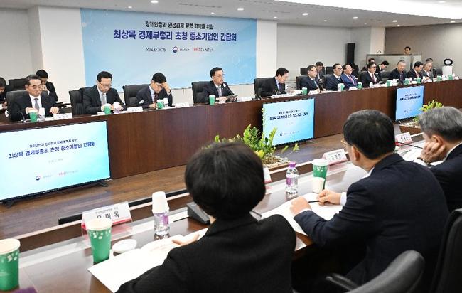최상목 부총리 겸 기획재정부 장관은 26일 중소기업중앙회를 방문해 `중기 익스프레스 핫라인` 가동을 점검하고 중소기업계 현안을 청취했다.