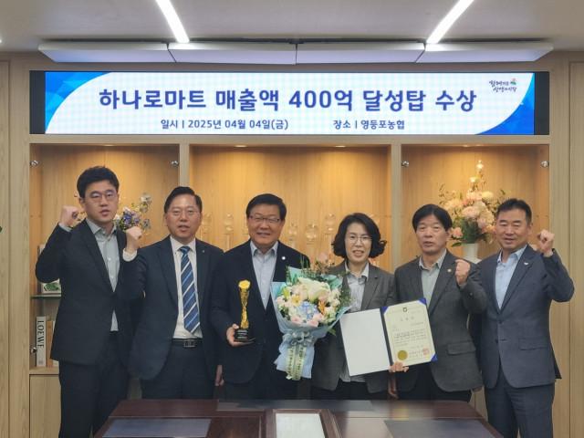 서울 영등포농협(조합장 백호)이 4일 농협중앙회에서 주관하는 ‘2024년도 농축협 하나로마트 매출 400억 달성탑’을 수상했다고 밝혔다.