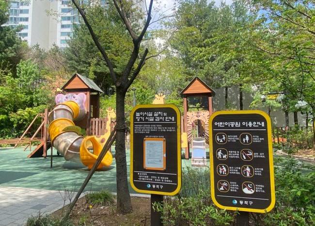 동작구(구청장 박일하)는 지난 15일 관내 30개 어린이공원 경계로부터 10m 이내를 금연구역으로 확대 지정했다. 사진은 동작구 태양 어린이공원 전경