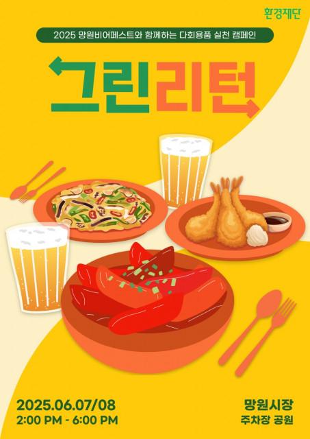 환경재단(이사장 최열)은 오는 6월 7일(토)부터 8일(일)까지 서울 망원시장에서 열리는 ‘2025 망원비어페스트’ 현장에서 다회용품 사용 문화를 확산하기 위한 ‘그린리턴 캠페인’을 진행한다. 환경재단이 주최·주관하고 3M과의 파트너십을 통해 글로벌기빙(GlobalGiving)이 지원하는 이번 캠페인은 전통시장에서 일회용품 사용을 줄이고 시민들이 직접 제로웨이스트(Zero-Waste)를 실천해 볼 수 있도록 기획됐다.