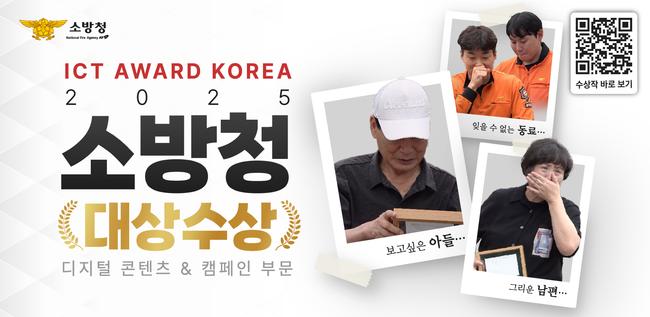 소방청(청장 허석곤)은 기획영상 *‘사진을 찍었는데 기적이 일어났습니다’*가 「ICT AWARD KOREA 2025」 디지털 콘텐츠&캠페인 부문에서 대상을 수상했다고 28일 밝혔다.