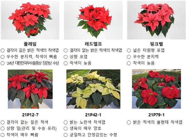보급 품종 가운데 가장 큰 비중을 차지하는 ‘플레임’은 2024년 기준 43.5%를 점유하며 밝고 선명한 빨강과 우수한 형태가 강점으로 평가됐다. ‘레드엘프’는 균형 잡힌 형태의 밝은 빨강, ‘핑크벨’은 넓은 분홍 잎이 장점으로 꼽혀 향후 시장 반응이 기대된다.