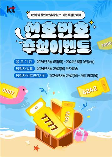 KT가 8월 6일부터 26일까지 `선호번호 추첨 이벤트`를 진행한다고 6일 밝혔다. 선호번호는 식별이 용이한 휴대전화 번호 뒤 4자리로 고객들의 선호도가 높은 번호이다.