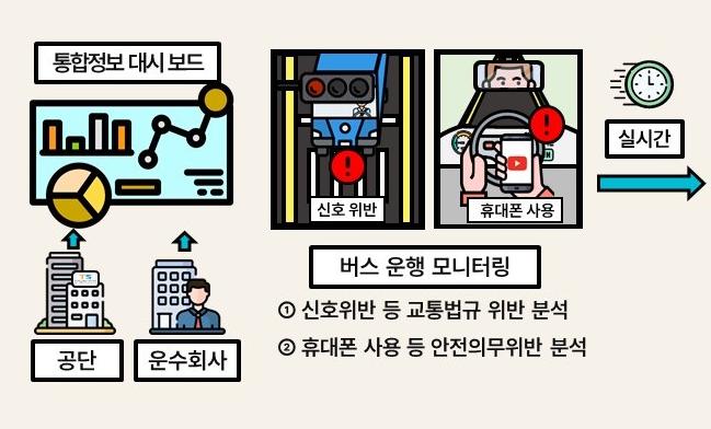 또한, AI 단말기는 과속・급정지・급출발 등 위험운전행동이나 사고영상(돌발긴급상황, 사고영상, 아차사고) 등을 모니터링하고 분석한 결과를 버스 운전자와 운수회사에 제공함으로써 올바른 운행습관을 갖추도록 돕는다.