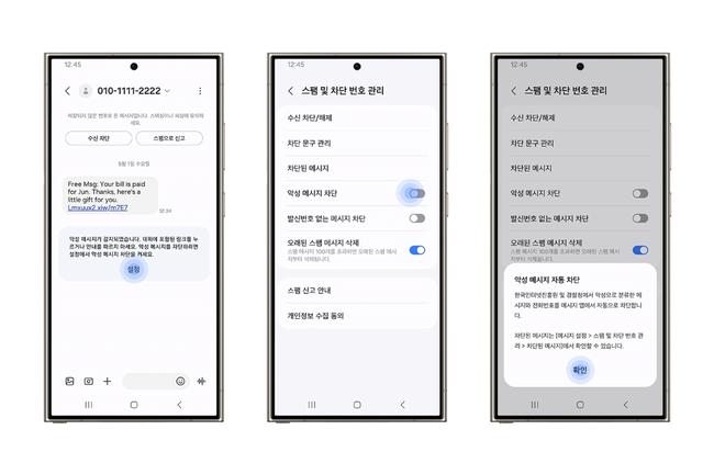 삼성전자와 한국인터넷진흥원(KISA)가 협업해 개발한 `악성 메시지 차단 기능`