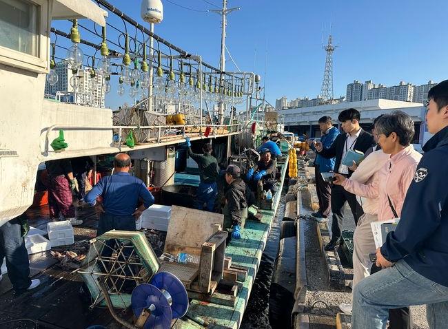 양륙항에 입항한 어선 점검 사진